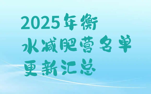 一、衡水十大减肥训练营培训机构排行榜一览表及详细介绍口碑评价